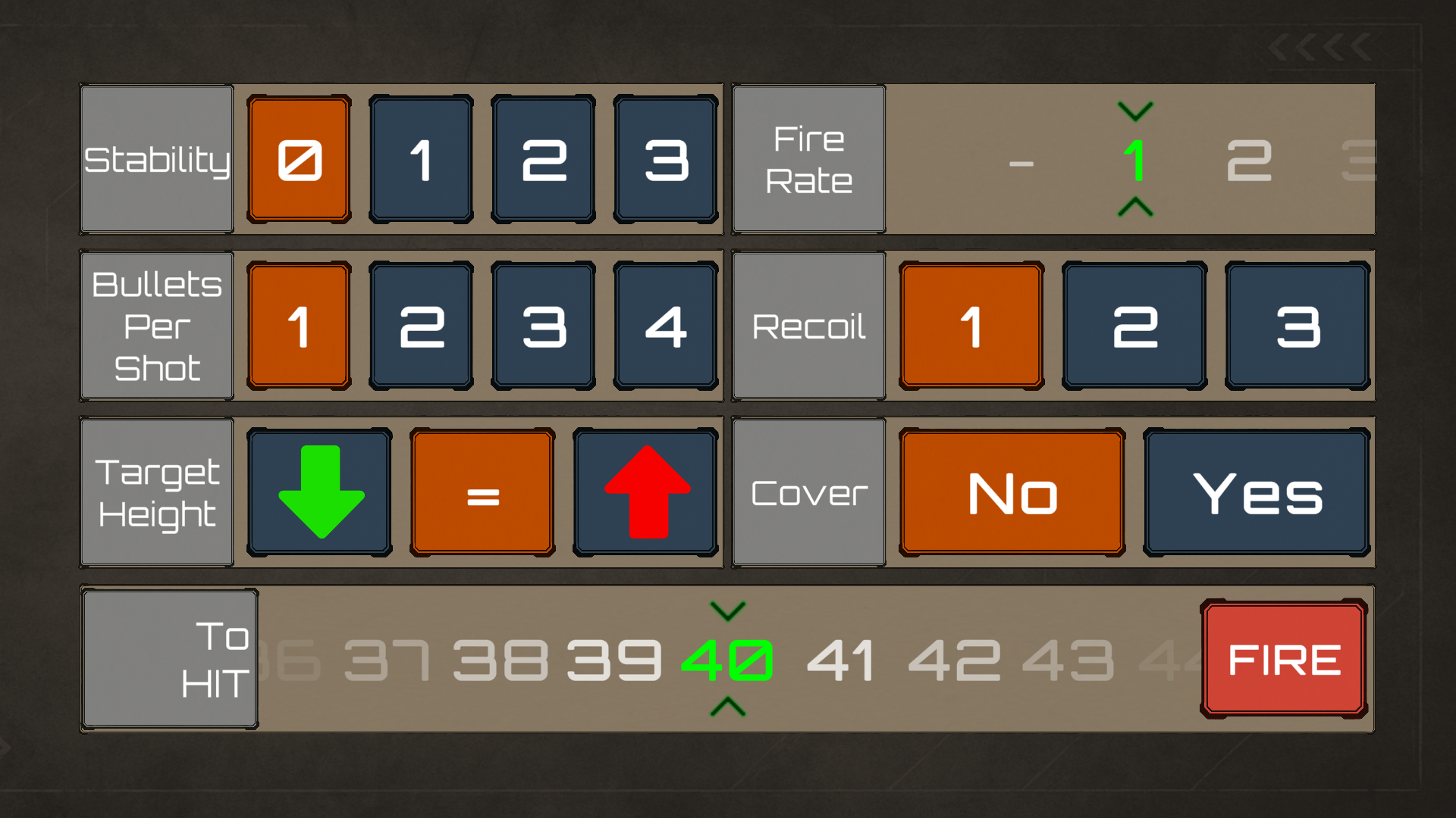 - Tracks bullets, cover modifiers, and difficulty for each attack